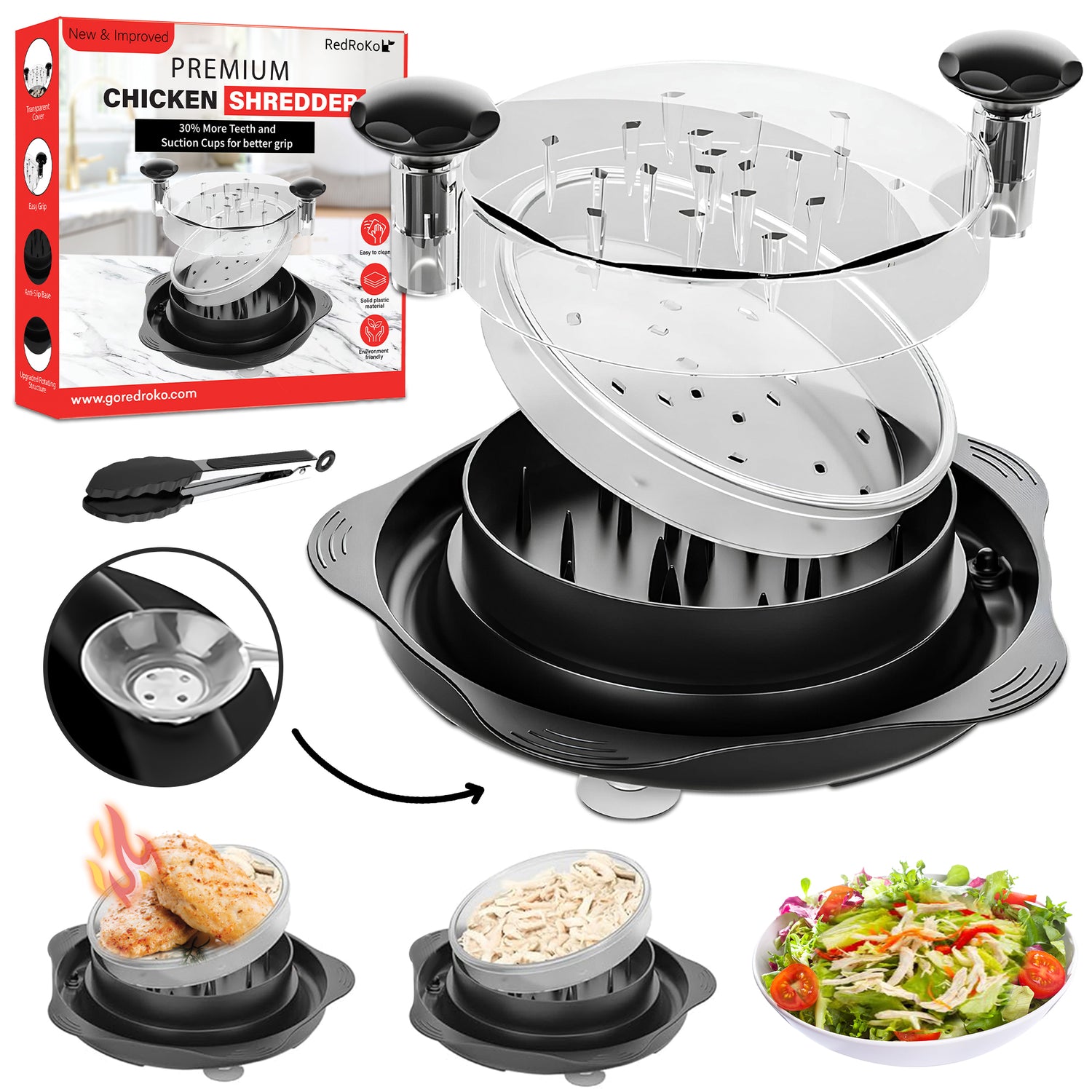 - EASY MEAT SHREDDING IN SECONDS: Effortlessly shred chicken, pork, or beef with our chicken shredder! Place cooked meat inside, secure the lid, and twist the handle. The suction cups will keep it steady while using the meat shredder, making kitchen prep quick and easy for tacos, sandwiches, and more!
